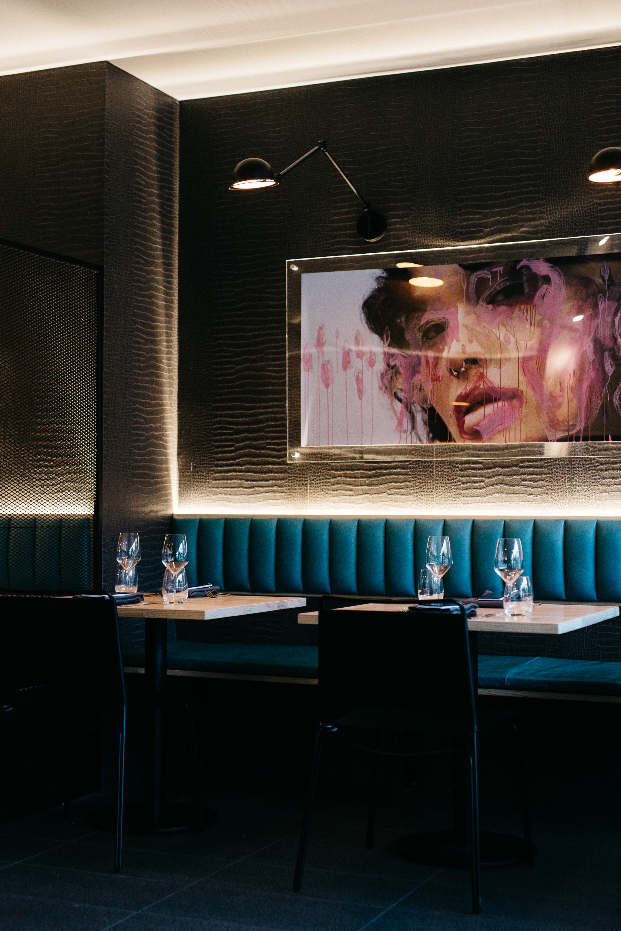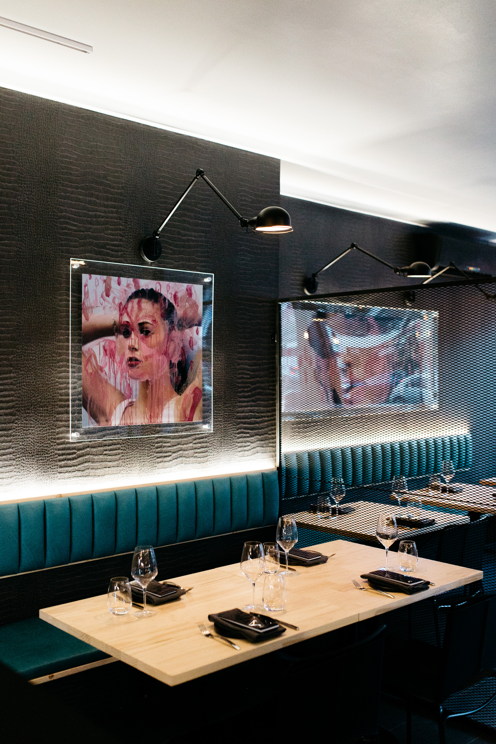 Her artwork is sampled around the restaurant, and has diners constantly looking around, engaging with the space, leaving with that ‘talking point’ Bryant was so keen to achieve with the restaurant.