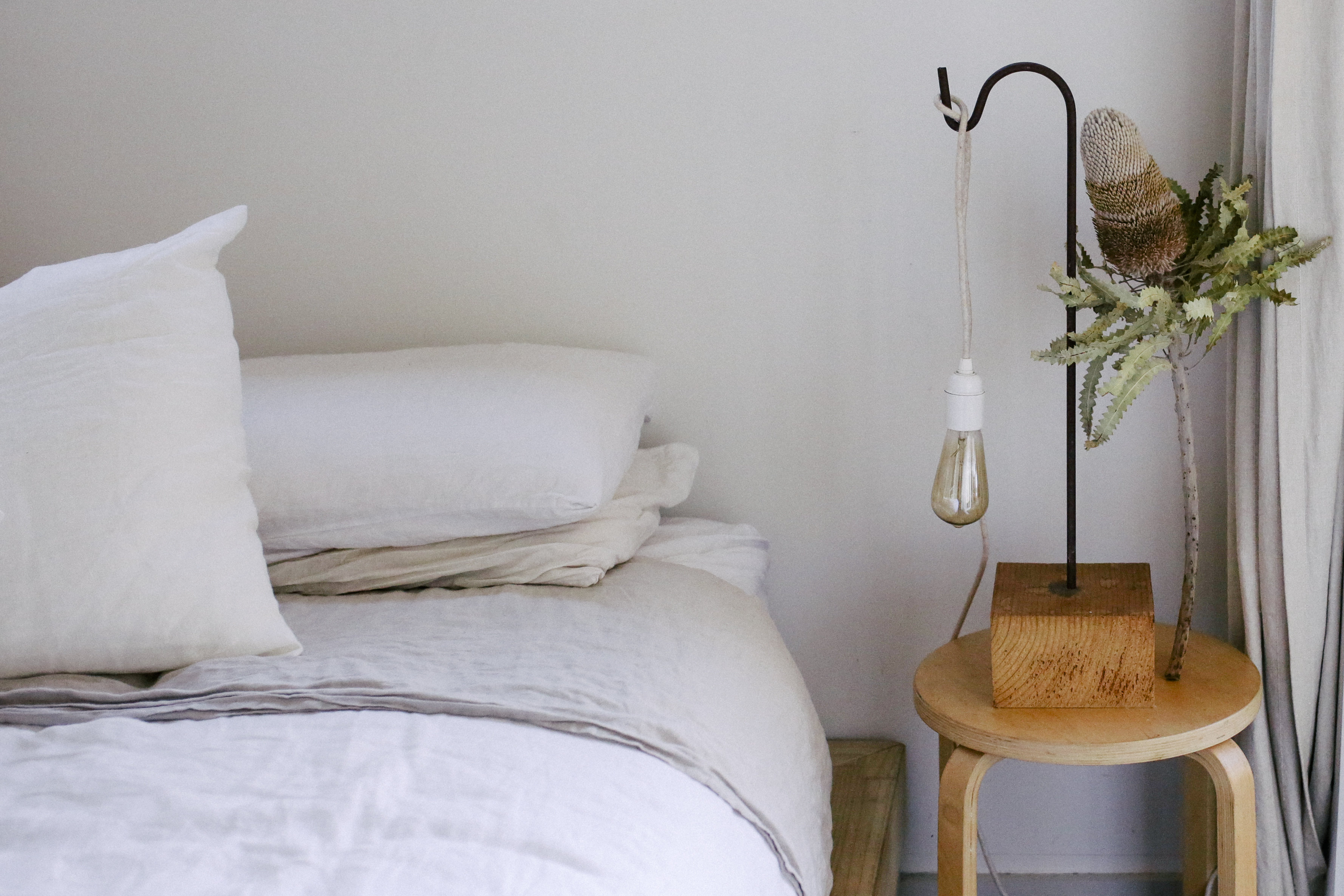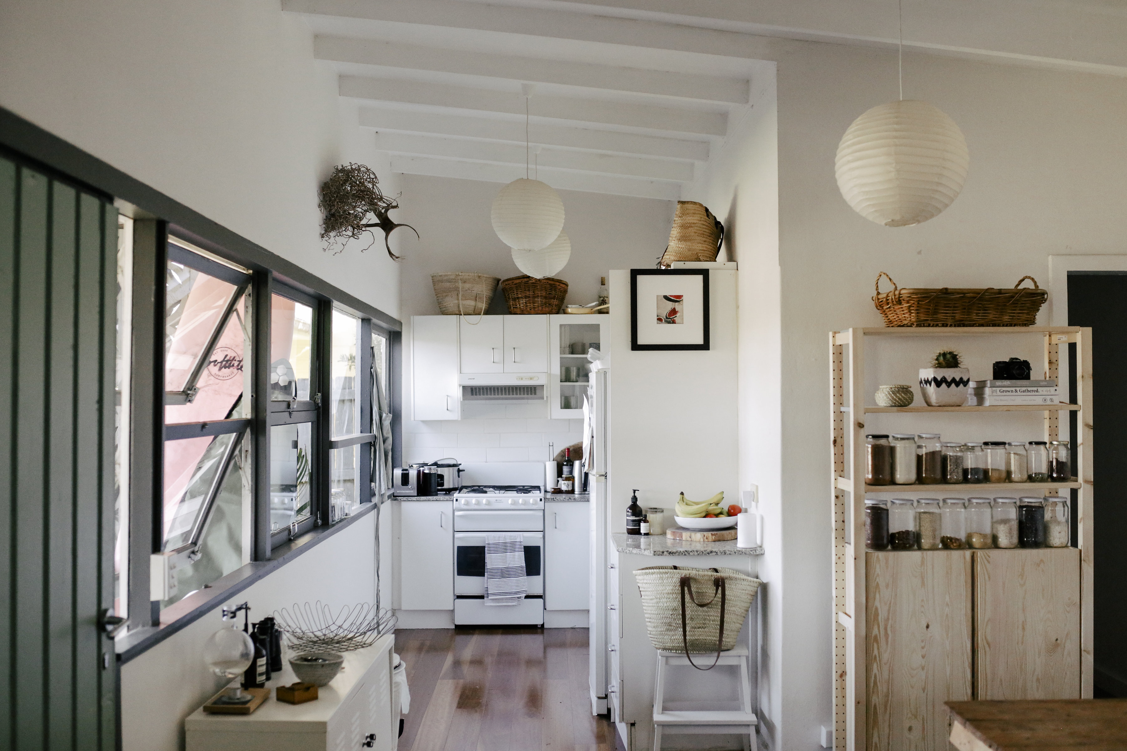 With it’s midday exposure to ocean breeze, incorporation of natural timber and soft colour schemes, Sam’s home manifests warmth. Located between Avalon Beach and Whale Beach, Sam describes her attraction to this place because of its age and subtle contemporary feel. “We love growing our own food, hosting friends and cooking healthy dishes, and this place allows for all of that with its endless natural light.” Growing up in several of the coast towns along the shores surrounding Sydney, Sam says she embraces having a place that enables creative outlet. “I love it’s old charm, the doors that are never closed and the big windows I can push open to bring in the sea breeze. This place allows me gain inspiration in exploring what’s around me.”