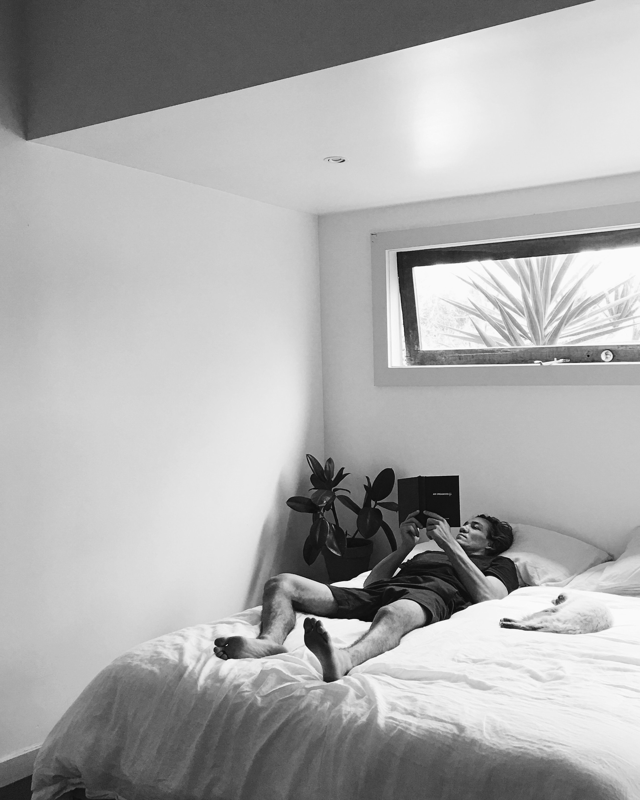 With their Avalon ‘beach shack’ feeling like home Sam tells me that she finally feels at ease. “The community in Avalon has a down to earth local quality about it, you feel as though you can disappear. I love going for walks up to Whale Beach in the morning and looking at all of the beautiful homes, imagining what we would do with them if they were ours. Spending time at Rough and Bare in Monavale and the Whale Beach Deli are also part of the pastimes I enjoy.” After editing for long hours Sam often spends time sitting in the grass, soaking up the sun. “Having grass surrounding us has made such a big difference. Because we face east, we get a lot of sunlight in the morning. Having the ability to sit and work outside allows me to connect back to where I am.”