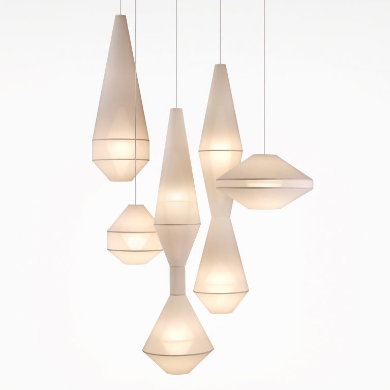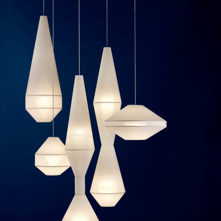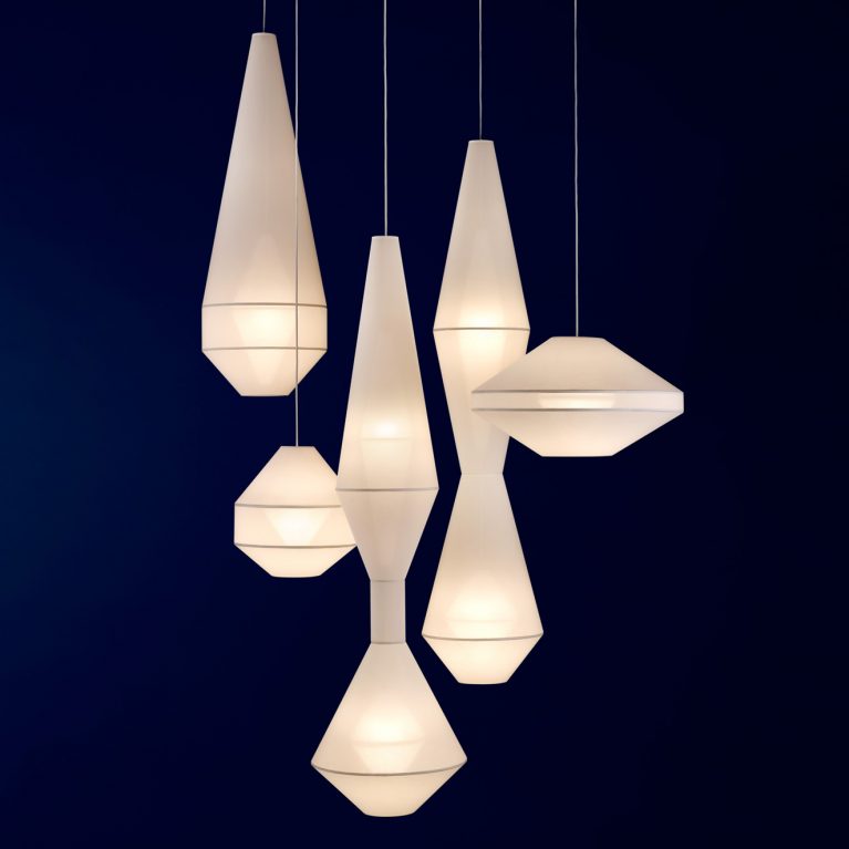Glowing with a welcoming allure and foreign beauty, the Mayu collection is an exploration of sculptural forms inspired by the beauty of Iceland’s otherworldly landscapes. Distinctive and delicate, each piece is hand crafted using traditional shade making techniques. An internal, glowing shade layered within an external sculptural shade gives these lights a unique sophistication and ghostly appearance, providing a warm glow from cosy lounge rooms to lofty stairwells.