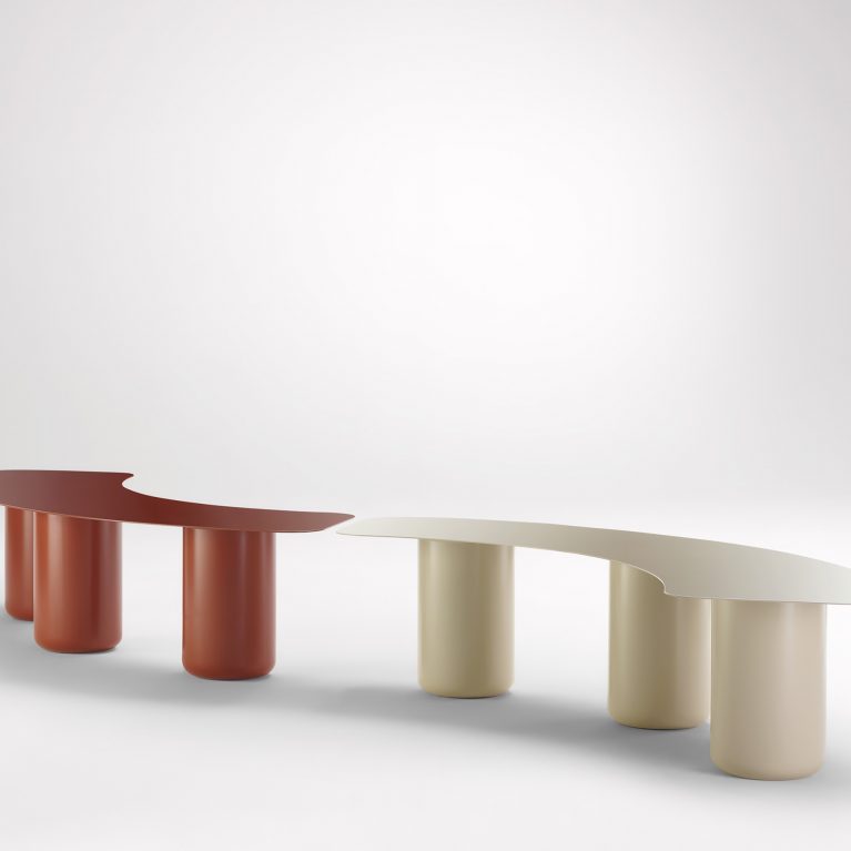 In mathematics, a sequence is an enumerated collection of objects in which repetitions are allowed. This playful series of coffee tables and bench seats are both fun and versatile in nature. Sequence features a simple, spun steel leg with a gentle curve that is offered in a number of heights. Sitting solo, in pairs or multiples the cylindrical legs join seamlessly with a shapely, slender top. The options for sequence are infinite — shape, size, height and colour can all be customised to suit your specific needs — your move.