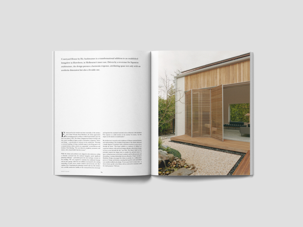 Courtyard House by Ha Architecture is a transformational addition to an established bungalow in Hawthorn, in Melbourne’s inner east. Driven by a reverence for Japanese architecture, the design pursues a harmonic response, attributing space not only with an aesthetic dimension but also a liveable one.