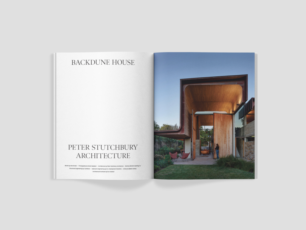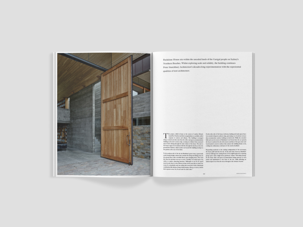 Backdune House sits within the unceded lands of the Garigal people on Sydney’s Northern Beaches. Whilst exploring scale and solidity, the building continues Peter Stutchbury Architecture’s decades-long experimentation with the experiential qualities of tent architecture.