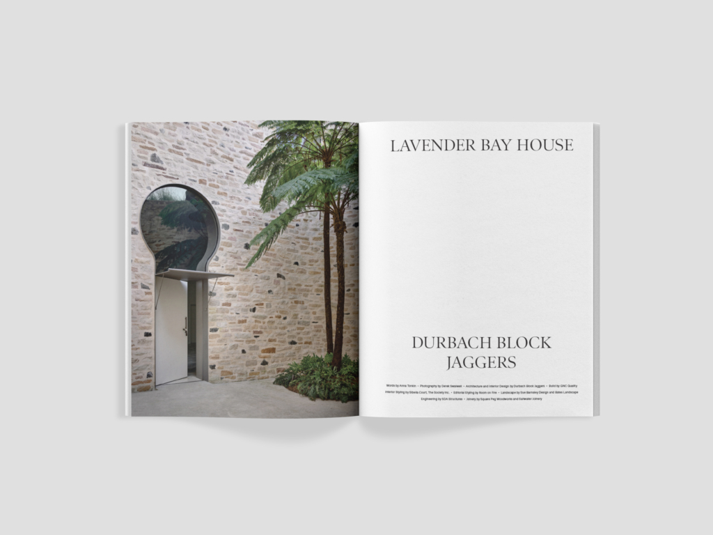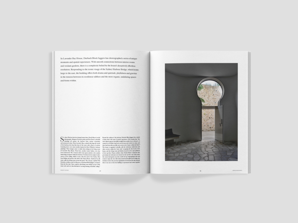 In Lavender Bay House, Durbach Block Jaggers has choreographed a series of unique moments and spatial experiences. With smooth connections between interior rooms and verdant gardens, there is a complexity belied by the house’s deceptively effortless resolution. Responding to the iconic visage of the Sydney Harbour Bridge, which looms large to the east, the building offers both drama and quietude, playfulness and gravitas in the tension between its rectilinear edifices and the more organic, undulating spaces and forms within.